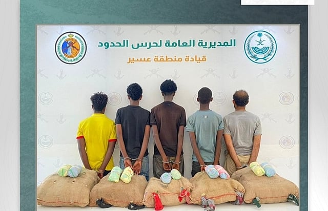 قبضت الدوريات البرية لحرس الحدود في قطاع الربوعة بمنطقة عسير على 5 مخالفين لنظام أمن الحدود من الجنسيتين الإثيوبية واليمنية، لتهريبهم (100) كيلوجراما من القات المخدر.