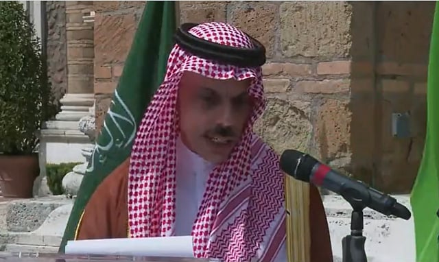 وأوضح بن فرحان، خلال مؤتمر صحفي مشترك مع نظيره الإيطالي في العاصمة روما، أن المملكة ماضية في دعم جميع الجهود الدولية الرامية إلى إيجاد حل للأزمة الروسية – الأوكرانية، بما يسهم في تعزيز الأمن والاستقرار العالمي.
