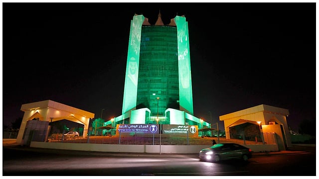 أضاء برج المركز الوطني للأرصاد، في جدة، بألوان علم المملكة، تزامنا مع الاحتفالات باليوم الوطني الـ92 للمملكة.