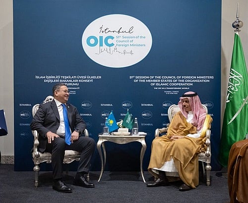 التقى الأمير فيصل بن فرحان بن عبدالله وزير الخارجية، اليوم السبت، نائب رئيس الوزراء وزير خارجية جمهورية كازاخستان مراد نورتليو، على هامش اجتماع الدورة الـ 51 لمجلس وزراء خارجية منظمة التعاون الإسلامي، المنعقد في مدينة إسطنبول التركية.
