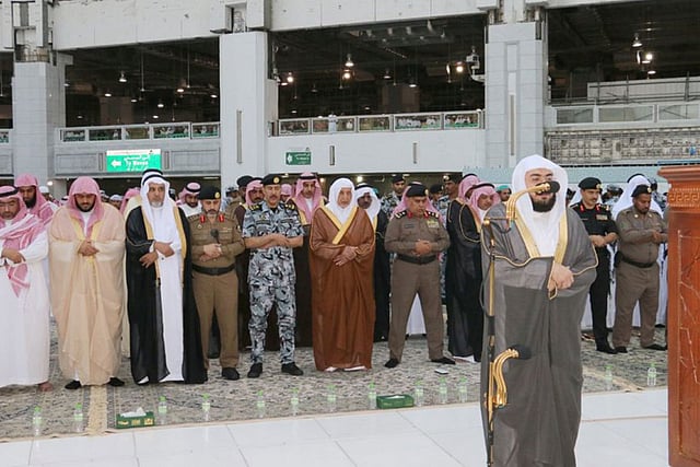 ومع أمير منطقة الرياض أدى الصلاة مفتي عام المملكة رئيس هيئة كبار العلماء وإدارة البحوث العلمية والإفتاء الشيخ عبدالعزيز بن عبدالله آل الشيخ، وعدد من كبار المسؤولين المدنيين والعسكريين .