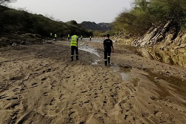 وعبر صفحته الرسمية على «تويتر»، قال الدفاع: مدني أحد المسارحة يعثر على أحد أفراد العائلة المفقودين، والمكونة من خمسة أشخاص في سيل وادي مسلة، وهي الزوجة (متوفاة)، سائلاً المولى عز وجل أن يتغمدها بواسع، فيما لفت الدفاع المدني إلى أن البحث ما زال جاريًا عن المفقودين.