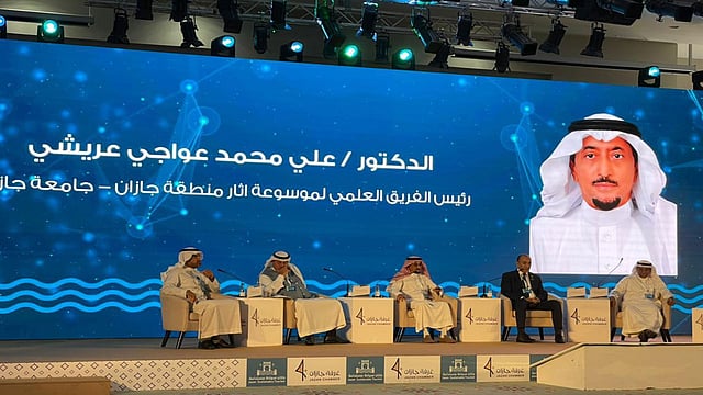 واستعرض الدكتور عواجي مراحل توثيق وحصر الآثار التاريخية بالمنطقة، مبينًا أنه تم الانتهاء من حصر ما يزيد على ٤٠٠ موقع أثري في عموم منطقة جازان، مشيرًا إلى أن العمل في التوثيق تم على مرحلتين تضمنتا جمع المادة العلمية المتعلقة بموضوعات الموسوعة الموجودة بالمراجع العربية والأجنبية، وكذلك العمل الميداني (المسح الأثري الميداني للمواقع والمناطق والمباني الأثرية والمتاحف العامة والخاصة)، كما تم تصنيف وترتيب المادة العلمية وإعداد المساقط والخرائط لكافة الآثار المرصودة.