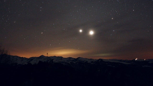 بعد ذلك بساعات يصل القمر منزلة الاقتران عند الساعة (10:31) مساءً؛ حيث يجتمع الشمس والقمر على ارتفاع واحد في السماء ويكون القمر منتقلًا من غرب الشمس إلى شرقها.