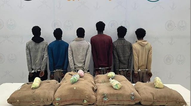 ألقت الدوريات البرية لحرس الحدود في قطاع الدائر، بمنطقة جازان، القبض على 6 مخالفين لنظام أمن الحدود من الجنسية الإثيوبية، لتهريبهم 108 كيلوجرامات من نبات القات المخدر.