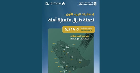 وكشفت عن نتائج أعمال المسح، حيث رُصدت 5214 ملاحظة على طرق المملكة في اليوم الأول من الحملة، بينها 353 ملاحظة وردت عبر منصات 938.