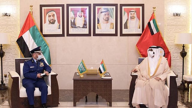 بحث رئيس هيئة الأركان العامة الفريق الأول الركن فياض بن حامد الرويلي، الأربعاء، مع وزير الدفاع الإماراتي محمد بن أحمد البواردي، تطوير التعاون بمختلف المجالات خاصة في المجال العسكري والدفاعي.