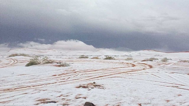 وكانت الهيئة العامة للأرصاد وحماية البيئة توقعت في تقريرها عن حالة الطقس لليوم الإثنين، سماء غائمة جزئيًا إلى غائمة ولا يستبعد تساقط الثلوج الخفيفة على مرتفعات منطقة تبوك والأطراف الشمالية من منطقتي الحدود الشمالية والجوف مع استمرار انخفاض درجات الحرارة على تلك المناطق والمنطقة الوسطى.