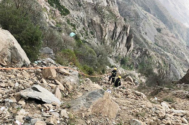 وأضاف: وصلت الفرق إلى الموقع عبر منحدر وعر وخطير وشديد الانحدار، وعثرت على السائق (من جنسية آسيوية) يعاني من إصابات متوسطة، مؤكدًا إنقاذه بمشاركة ثلاثة فرق جبلية وإخراجه وحمله بواسطة النقالة والحبال، ومن ثم نقله لمستشفى الملك فهد بالباحة عن طريق الهلال الأحمر.