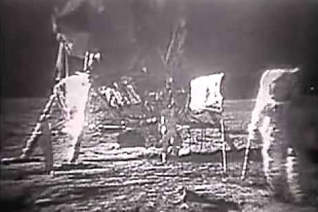 وتتضمن مجموعة الأشرطة أيضًا لقطات لرائد الفضاء الأمريكي «باز ألدرين»، وهو يمشي بتثاقل على القمر ويزرع العلم الأمريكي على سطحه ويجمع العينات، كما يظهر فيها تسجيل للمكالمة التي أجراها الرئيس الأمريكي السابق ريتشارد نيكسون مع الطاقم في ذلك الحين.