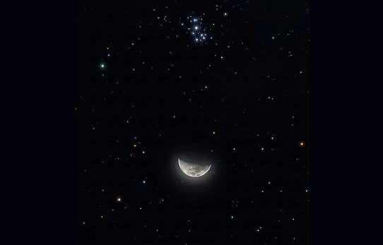 شهد الراصدون في سماء الوطن العربي مساء أمس، اقتران قمر رمضان بعنقود الثريا النجمي أحد أشهر وأجمل العناقيد النجمية المفتوحة.