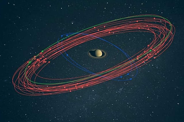 وأوضحت الجمعية، أن دراسة مدارات هذه الأقمار يمكن أن تكشف أصولها والظروف المحيطة بزحل وقت تشكلها، مشيرة إلى أن أقمار ذلك الكوكب الخارجية تتجمع بثلاث مجموعات مختلفة من حيث الميل الزاوي حول زحل؛ حيث يندرج اثنان من الأقمار التي تتحرك إلى الأمام المكتشفة حديثًا في مجموعة من أقمار خارجية بميل زاوي يبلغ حوالي 46 درجة تسمى مجموعة (الإنويت) ، وربما تكون هذه الأقمار جزءًا من قمر أكبر تحطم في الماضي البعيد.