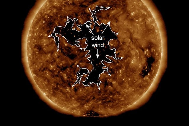وأثناء دوران الشمس حول نفسها، تطلق جزيئات مشحونة تتحرك بسرعة هائلة تتراوح بين 400 و800 كيلومتر في الثانية الواحدة، ويمكن أن تسبب هذه الرياح الشمسية فور وصولها إلى الغلاف الجوي للأرض ظهور الأضواء الشمالية أو الشفق القطبي.