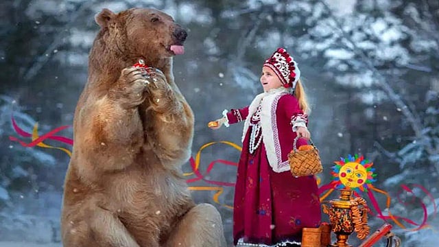 ونشرت الصحيفة عددًا من الصور التي التقطتها المصورة ميلا جدانوفا للدب الذي يملكه شخصان يدعيان سفيتلانا ويوري بانتيلينكو.