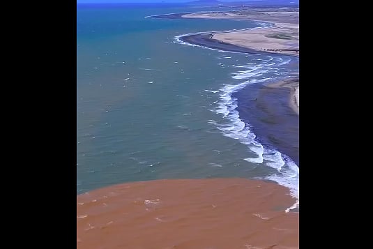 عرض حساب "العربية السعودية" عبر منصة "إكس"، فيديو لمشهد بديع يظهر التقاء مياه السيول بمياه البحر على شواطئ الشقيق في منطقة جازان.