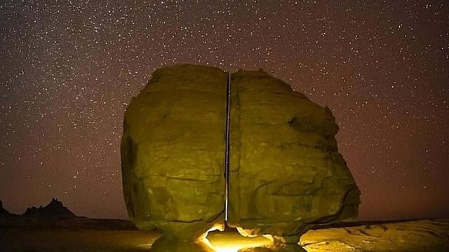 وكشف الدكتور عبد العزيز بن لعبون، العالم الجيولوجي السعودي سر انشطار هذه الصخرة التي تبعد 245كم عن تبوك، موضحًا أن عمرها يزيد على 400 مليون سنة، وطولها يبلغ تقريبًا 8 أمتار، وفقا للعربية.