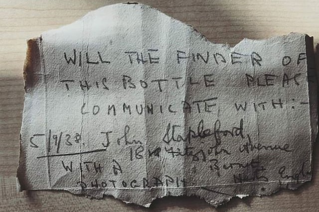 وكشف الموقع الأمريكي عن أن الرسالة الموقعة باسم «جون ستابلفورد»، تضمنت عنوانًا في مقاطعة «هيرتفوردشاير» غير الحضارية، إنجلترا، وطلبت من الشخص الذي يجد الزجاجة أن يتصل بكاتبها.