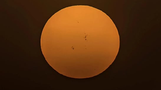 رُصدت مساء اليوم من سماء مدينة عرعر في منطقة الحدود الشمالية بقع شمسية ضخمة ظهرت بوضوح على قرص الشمس.