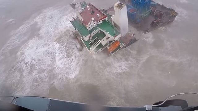 حطمت عاصفة استوائية هوجاء، سفينة في عرض البحر، وشطرتها إلى نصفين، مما أدى لاختفاء 20 شخصا من طاقمها، قبالة هونغ كونغ.