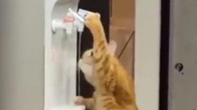ولا تتجاوز مدة الفيديو 12 ثانية، وتظهر فيه قطة وهي تقف على قدميها الخلفيتين، وتضغط بإحدى القدمين الأماميتين على مفتاح الصنبور الأزرق، حتى تبقي المياه متدفقة لتشربها.