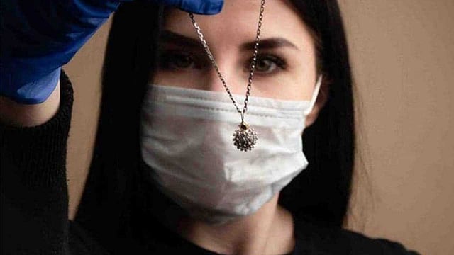 في ظل الأزمة التي تعصف بدول العالم في الوقت الحالي؛ حيث تفشى فيروس كورونا وتجاوز عدد الإصابات مليون حالة، استثمرت إحدى شركات المجوهرات الروسية تلك الأزمة وأنتجت ما يسمى بقلادة كورونا.