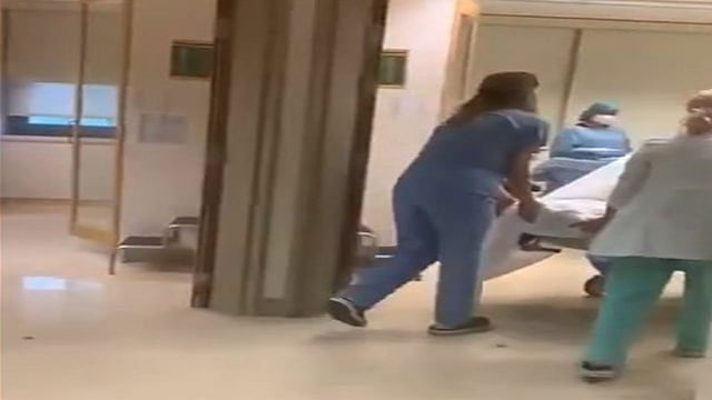 وأظهر الفيديو مجموعة من الأطباء يدخلون سيدة لغرفة العمليات؛ حيث كانت في حالة وضع، قبل أن يسمعوا صوت انفجـار قويًا بعدها تهشم زجاج النوافذ ليتحول المكان لفوضى جراء الدمار.