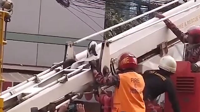 نفّذ رجال الإطفاء، عملية خاصة لإنقاذ قطة علقت لمدة 48 ساعة على ناطحة سحاب، في مدينة تشاتوغرام ببنغلاديش.