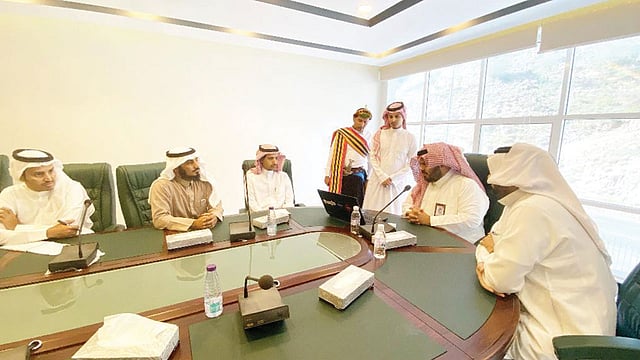 واستمع محافظ الداير لشرح مفصَّل عن فلسفة الهوية من رئيس إدارة الإعلام والنشر إسماعيل المالكي، بحضور رئيس مهرجان البن ورؤساء الإدارات لمهرجان البن.