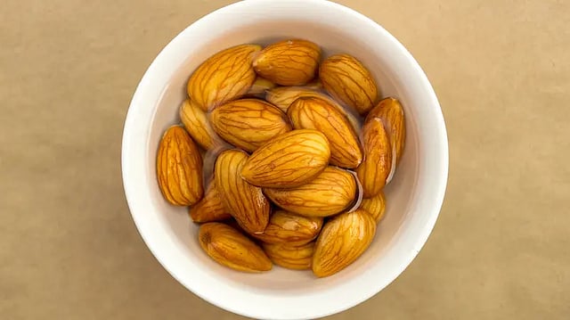 اللوز يحتوي على نسبة ضئيلة من الماء، وعند نقعه يصبح أكثر طراوة، ما يسهل على الأشخاص الذين يعانون من اضطرابات هضمية تحمله مقارنة باللوز الجاف.