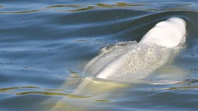 وقالت إيزابيل دورليت-بوزيه المسؤولة في إدارة إقليم أور إن الحوت الأبيض تم رصده الأربعاء وراقبته فرق الإنقاذ بطائرات مسيرة لكنه لم يتحرك تقريبا الخميس، وجنح بين منطقتين في النهر، وأظهرت لقطات الطائرات المسيرة الحوت وهو يسبح ببطء وجسده تحت الماء مباشرة ويصعد ليتنفس.