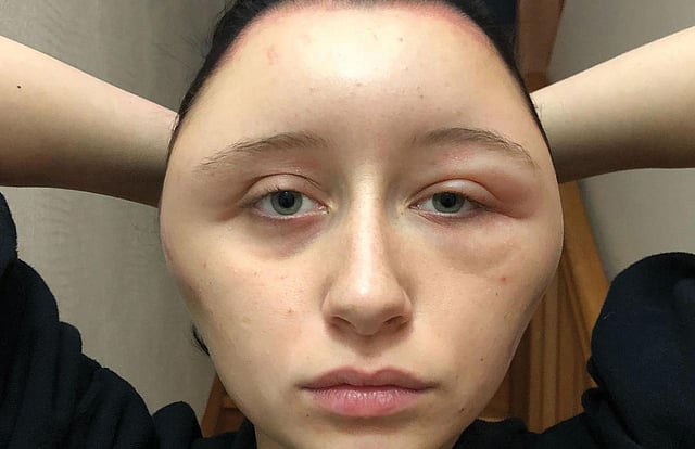 وبعد ساعات قليلة من الذهاب إلى الصيدلي وتناول مضادات الهيستامين وكريم ضد الحكة، تغير شكل الفتاة كاملًا؛ حيث قالت: "كان لديّ رأس يشبه مصباح الإضاءة".