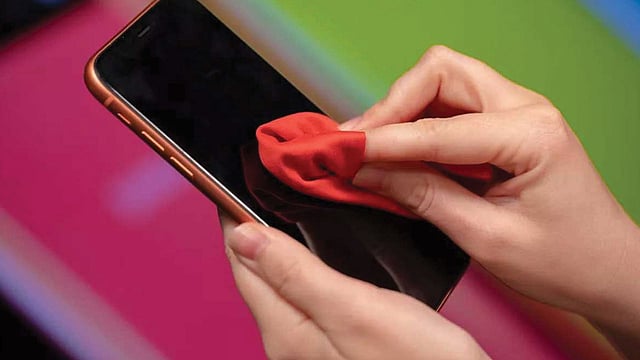 ثالثًا: قبل مسح شاشة الهاتف الذكي يجب التأكد من عدم وجود فتات أو جزئيات اتساخات أخرى على الشاشة، حتى لا تتسبب في ظهور خدوش. وعند تنظيف الأجهزة الجوالة يجب عدم استعمال الكحول أو المنظفات أو الماء والصابون؛ لأنها قد تضر بالطبقة المقاومة للشحوم، وتضعف قابليتها للاستعمال.
