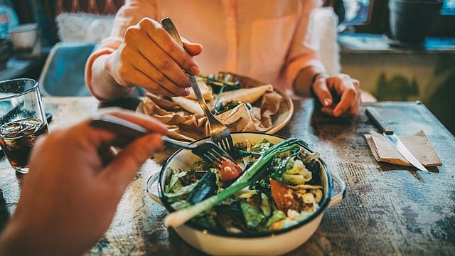 سيدة تتناول وجبة طعام