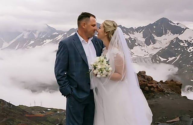 احتفل زوجان بحفل زفافهما على قمة جبل إلبروس، أعلى قمة جبلية في أوروبا، حيث تزوج الشاب الروسي أنطون من حبيبته كريستينا، على قمة الجبل الواقعة على ارتفاع 5080 مترا فوق سطح البحر، في طقوس مهيبة قادتها لوبوف أحمدوفا، رئيسة مكتب التسجيل المدني في منطقة إلبروس.