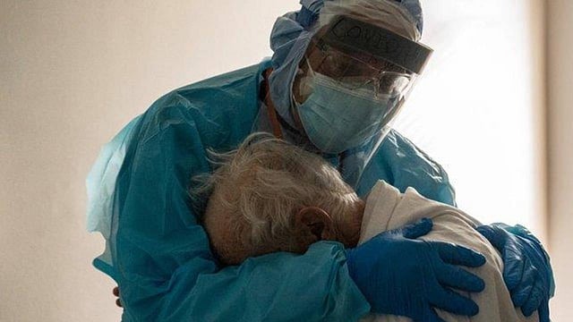 ضجت مواقع التواصل الاجتماعي المختلفة، بصورة رجل مسن مصاب بفيروس كورونا يعانقه طبيب يرتدي بزة واقية، في أحد مستشفيات الولايات المتحدة؛ حيث وثقت تلك الصورة كم الآلام والأحزان التي يعيشها المصابون في غرف العزل.