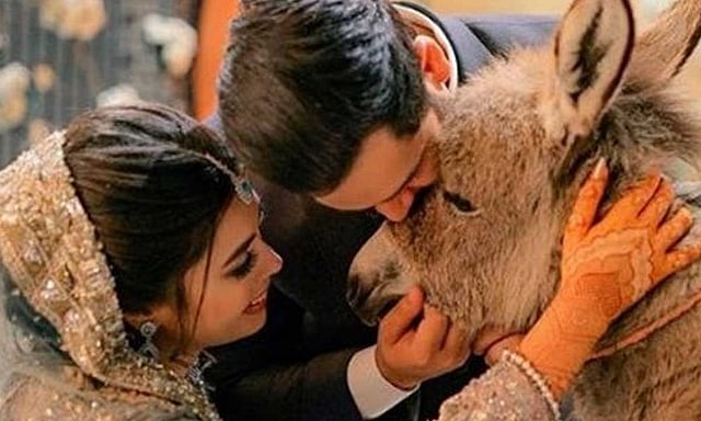 حرص عريس باكستاني على تقديم هدية غير تقليدية لزوجته ليلة زفافهما، حيث قدم لها حمارا صغيرا.