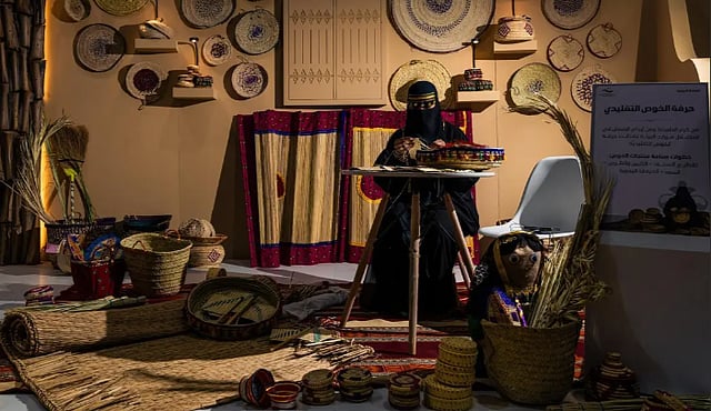 تحظى فعاليات "الجادة البيئية"، التي تنظمها هيئة تطوير محمية الإمام عبدالعزيز بن محمد الملكية، بالتزامن مع "موسم العرمة" في الفترة من 21 وحتى 26 فبراير الجاري، بحضور لافتٍ للحرف اليدوية كأحد أبرز الصناعات الشعبية التي تعزز نقل الموروث الثقافي الأصيل للأجيال الصاعدة، حيث تسعى الهيئة من خلال دعمها لتلك الصناعات إلى تعزيز الترابط بين الإنسان والبيئية، إضافة إلى تعريف المشاركين بالعادات والتقاليد الأصيلة التي شكلت جزءًا من حياة الآباء والأجداد.