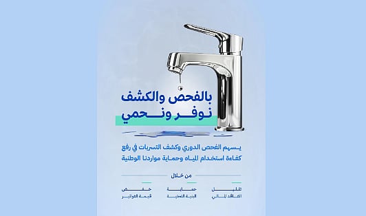 وبيّنت الهيئة أن المتابعة المستمرة واستخدام أدوات الترشيد يسهمان في تقليل الفاقد المائي، وحماية البنية التحتية، وخفض تكلفة استخدام المياه، مؤكدةً أن الكشف المبكر عن التسربات خطوة استباقية تعزّز استدامة الإمدادات وتضمن كفاءة استخدام المياه، بما يدعم المحافظة على الموارد الوطنية ويجسّد مسؤولية الجميع في حمايتها.