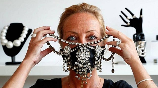 أما مصممة الأزياء والإكسسوارات أوليفيا إينو فقد استغلت موهبتها في صنع كمامات مرصعة بالترتر والفصوص وغيرها من الأشياء اللافتة مثل الزهور المصنوعة من الحرير، ويبدأ سعر الكمامة الواحدة من 75 يورو على حسب المواد المستخدمة والتصميم.