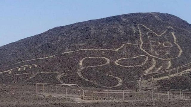 اكتشف علماء الآثار في بيرو رسمًا، يبلغ طوله 37 مترًا لقط في منطقة لم تستكشف بكثرة بموقع خطوط نازكا المشهور في البلاد، والمدرج على قائمة منظمة الأمم المتحدة للتربية والعلم والثقافة (يونسكو) لمواقع التراث العالمي، والذي يضمّ مئات من الرسوم العملاقة التي يرجع عمرها إلى أكثر من ألفي عام.