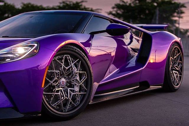 وفي الختام، اختارت شركة HRE سيارة فورد GT أرجوانية لعرض الجنوط الجديدة، والتي كانت في رأينا خطوة سيئة لأن GT تبدو رائعة للغاية في هذا اللون لدرجة أنك تنسى أن ترى جنوط تيتانيوم المتطورة هذه، وتم تصميم كل جنط حسب الطلب ويمكن تخصيصها بمجموعة كبيرة من خيارات الألوان.
