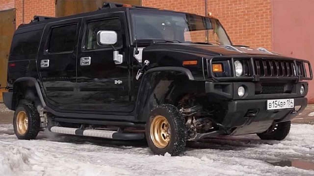 وكما هو متوقع، فإن تركيب عجلات مقاس 13 بوصة على همر H2 ليس بالأمر السهل إطلاقاً، إلا أنّ فريق Garag54 أجرى تعديلات مكثفة على الجزء السفلي من الشاحنة العملاقة من أجل تحقيق ذلك، وإلى جانب هذه التعديلات، قام الفريق الروسي بتركيب الإطارات الصغيرة على جنوط باللون الذهبي تتناسب مع الطلاء الخارجي أسود اللون.