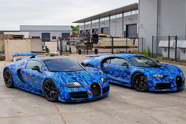 كنا نتخيل أن هناك عددًا قليلًا من مالكي بوجاتي الذين لديهم كلّ من فيرون وشيرون في مرائبهم الفارهة، وربما اثنان منهم يملكون السيارتين باللون نفسه، لكننا لم نتخيل أن يمتلك شخص سيارتين تحصلان على التغليف الأزرق ذاته مثل هاتين السيارتين!