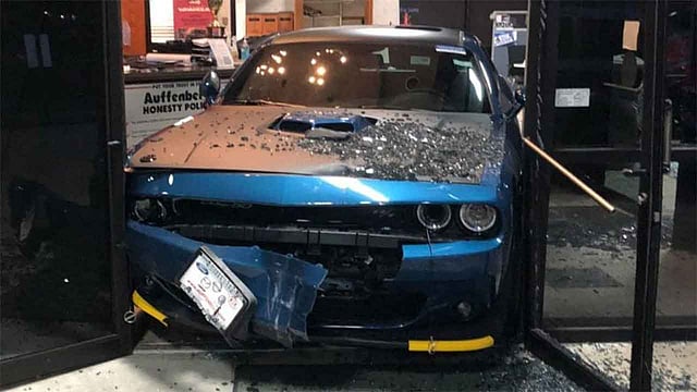 كما نرى في هذه الصورة التي تم نشرها على ريديت، بواسطة موظف يعمي في وكالة Auffenberg Chrysler Dodge Jeep Ram، حاول اللصوص إخراج تشالنجر من صالة العرض من خلال المرور بها عبر الأبواب، وكان هذا قرارًا سيئًا للغاية، لأن السيارة كانت أعرض بكثير من عرض الباب.