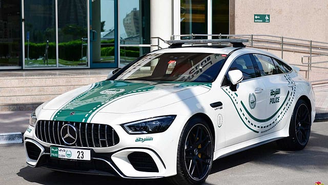 أضافت القيادة العامة لشرطة دبي سيارة مرسيدس بنز GT 4- أبواب كوبيه إلى أسطول دورياتها الفارهة وذكرت القيادة أن شرطة دبي حريصة على إدخال السيارات الرياضية والفارهة ضمن أسطولها من الدوريات، بهدف تعزيز التواجد الأمني لرجال الشرطة في الأماكن السياحية المهمة التي تحظى بالتجمعات السياحية، ومن أبرزها برج خليفة، وبوليفارد محمد بن راشد، و«جي بي آر»، و«لامير»، وغيرها من المناطق، مؤكدًا أن الخطط الموضوعة في هذا الجانب هو الارتقاء بكل السيارات المستخدمة في شرطة دبي بما يليق بسمعة ومكانة الإمارة.