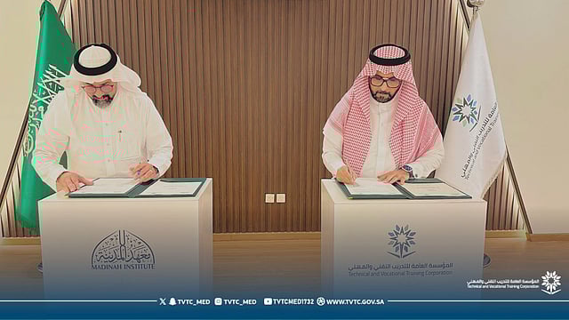 وقّعت الإدارة العامة للتدريب التقني والمهني بمنطقة المدينة المنورة مذكرة تفاهم مع مؤسسة معهد المدينة، بحضور الدكتور سلطان بن سفر الغامدي، مدير عام التدريب التقني والمهني بالمنطقة، والدكتور إبراهيم بن جمال الحارثي، الرئيس التنفيذي لمعهد المدينة.