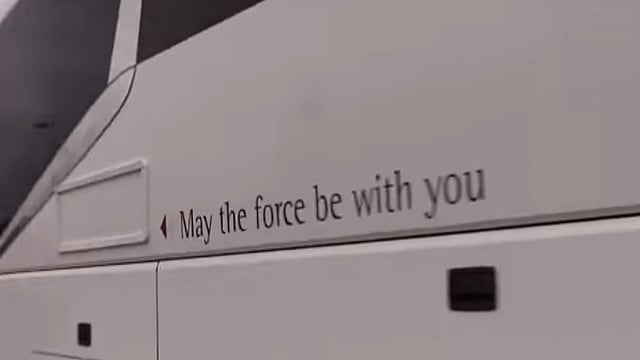 وأظهر مقطع فيديو حافلة ريال مدريد، وهي في طريقها إلى الفندق وقد ظهر على أحد جانبيها عبارة «لتكن القوة معك»، كما تم رصد وجود عبارة «العدو هو الخوف».