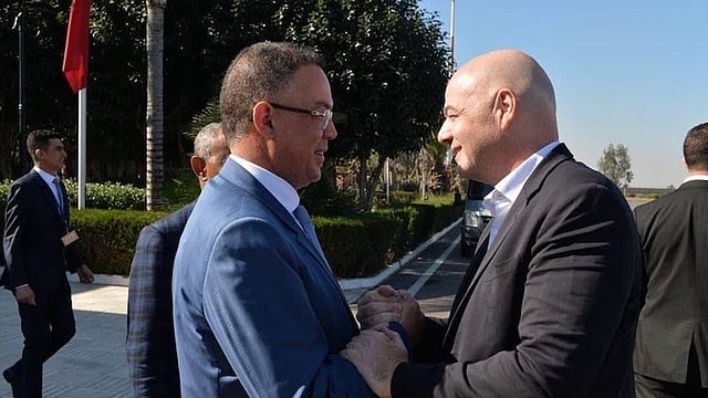 حط جياني إنفانتينو رئيس الاتحاد الدولي لكرة القدم «فيفا»،، اليوم الأربعاء، الرحال في المغرب، من أجل بحث سبل تطوير اللعبة في البلد العربي؛ حيث كان في استقبال السويسري رئيس الاتحاد المغربي فوزي لقجع.