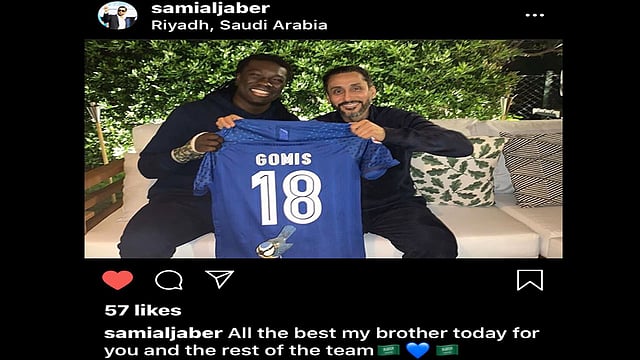 ونشر الجابر -عبر حسابه الرسمي على موقع التواصل الاجتماعي «إنستجرام»- صورة رفقة الفرنسي بافتيمبي جوميز، لاعب الهلال، وكتب: «أتمنى التوفيق لك يا أخي في مباراة اليوم، انت وباقي لاعبي الهلال».