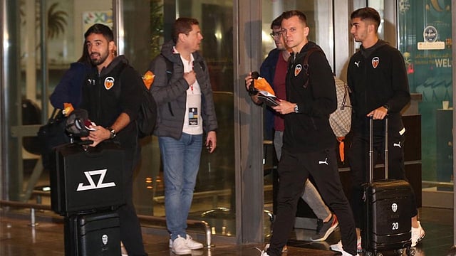 وصلت بعثة الفريق الأول لكرة القدم بنادي فالنسيا، في الساعات الأولى من صباح اليوم الثلاثاء، إلى مطار الملك عبدالعزيز بجدة؛ للمشاركة بكأس السوبر الإسباني الذي تستضيفه السعودية بنظامه الجديد، ويشارك فيه 4 أندية هي الريال وبرشلونة وأتلتيكو مدريد وفالنسيا.